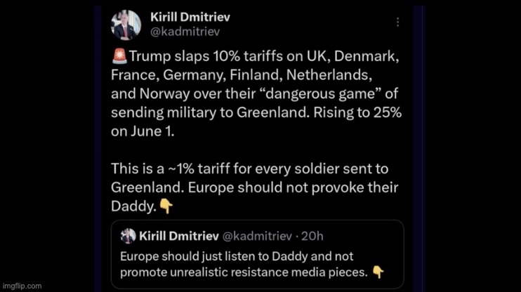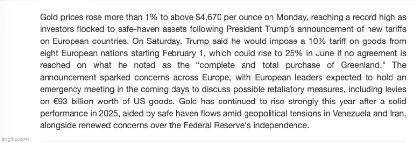 “Trump slaps new tariff on 8 NATO countries until deal is made for Greenland.” This is BAD!
