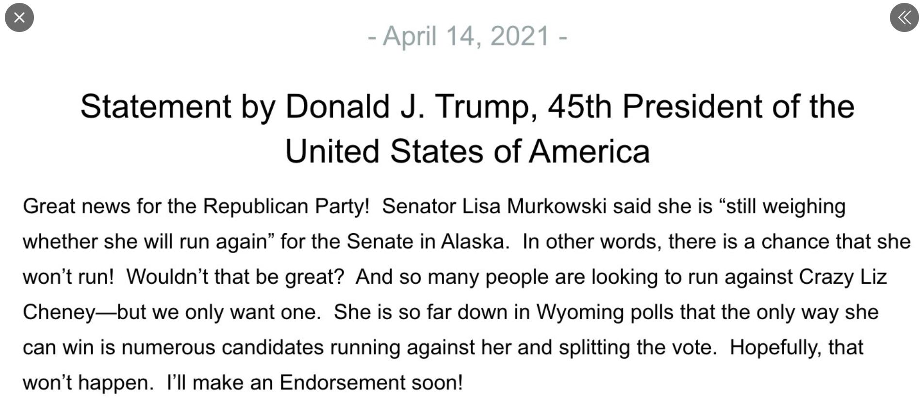 https://www.breitbart.com/politics/2021/04/15/donald-trump-plans-endorsement-in-wyoming-primary-against-crazy-liz-cheney/